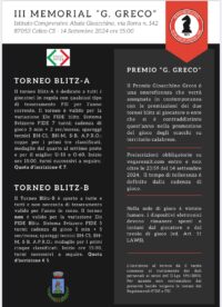 Ma, la novità in assoluto è aver voluto l’istituzione del Premio Greco. Un’onorificenza che verrà assegnata ad uno scacchista o ente che si è contraddistinto nell’anno alla promozione del gioco degli scacchi nel territorio calabrese, attraverso risultati agonistici o promozioni di eventi.